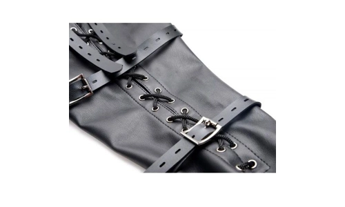 Pinch your partner's arms together behind their back to fully restrain them for your amusement! This full sleeve is a unique piece of bondage gear that effectively takes your scene to the next level. Slip your playthings arms into the sleek, attractive sleeve, secure the laces, and adjust all four of the straps to a tightness that will keep them trapped, but comfortable, if that is your desire!