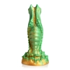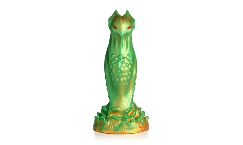 This cute Andromeda alien is the perfect size to crawl inside your most intimate of places! Green and gold skin shine when light hits it. Two narrow, red eyes watch you with a menacing glare. The head has small, soft ears, a narrow face and a bumpy, large chest that makes the dong swollen at the center. It is textured for your pleasure and will satisfy you in new ways that only this alien can deliver! Made out of premium, flexible, phthalate-free silicone, this dong is body-safe and best used with water-based lubricants only. Enjoy hands free rides due to the strong suction cup base! Invite a partner to indulge in kinky cosplay or fantasy roleplay and use their favorite harness to transform this dong into a strapon! Afterward, make sure to wash it with warm water and mild soap, then spray it with a toy cleaner and air-dry. Keep out of direct sunlight and heat.