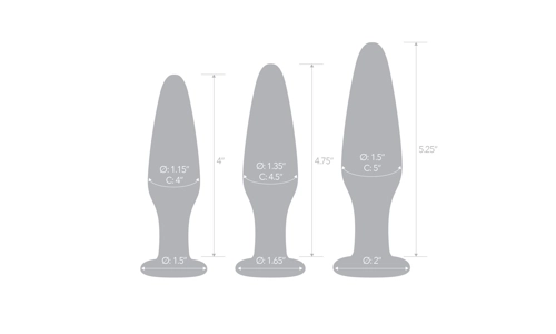 Glas Anal Training Butt Plug Set (4" - 4.75" - 5.25") Summary