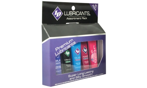 5 small tubes of assorted lubricants. 14g of ID Sensations warming liquid 12g of ID Glide 10g of ID Millennium 12g of ID Pleasure 12g of ID Juicy Lube Kiwi and Strawberry