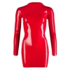 LateX Zip Up Mini Dress With Long Sleeves Red