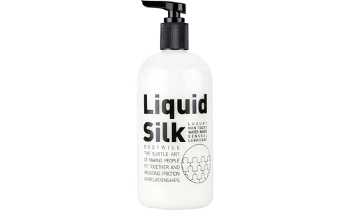 500ml Liquid Silk with Pump dispenser.Make your sex life comfortable and pleasurable with Liquid Silk lube, the ever popular water based lubricant. Liquid Silk is a lube with a luxury feel so you can be relaxed and ready for action, water based so suitable for use with condoms and sex toys, and has a non-tacky effect so you're guaranteed a smooth, sensual experience between the sheets!