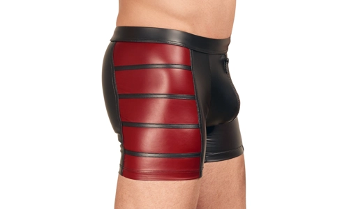Black pants from NEK made out of trendy matte look material with red inserts at either side. There is a practical, padded zip at the front that can be unzipped quickly for erotic fun. Wonderfully stretchy pants that are extremely comfortable to wear.