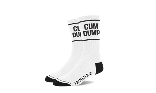 This pair of Prowler RED Cum Dump Socks are classic white in color and feature Cum Dump on the sock band, with black stripes along the band and toes. This pair is perfect for daily wear, or for a special occasion. Wear them with anything! These attention-grabbing socks are sure to make people do a double take and will surely appeal to like-minded fans of jizz. The classic black-and-white colors keeps it classy as these socks can be paired with anything.