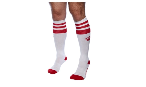 Football socks are a kinky fetish for guys who like the rough and ready thought of sportsmen, and these socks have been designed to look both authentic and fetish inspired. Made from soft material, these socks can ride up to the knee and feature three coloured stripes at the top, as well as the Prowler Paw logo just below them. You can choose from black & red, red & black & white and red for a sporty, masculine look.