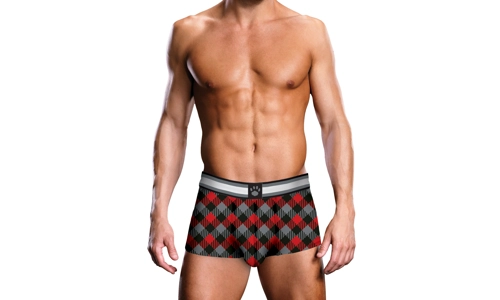 Prowler's trunks in this trendy plaid print are where classic design meets modern comfort. The stylish tartan plaid pattern, featuring bold shades of red, black, and grey, adds sophistication to your daily attire. Whether worn under your favourite jeans or showcased as part of your loungewear, these trunks are designed to make a statement. Made from a body-hugging stretchy fabric, these trunks offer a snug and comfortable fit that moves with you throughout the day. The contoured pouch provides ample support, while the elastic waistband ensures a secure and personalized fit. These trunks are designed to flatter your body, no matter what your physique. Offering the right amount of support and coverage, these trunks help your rear look its best.