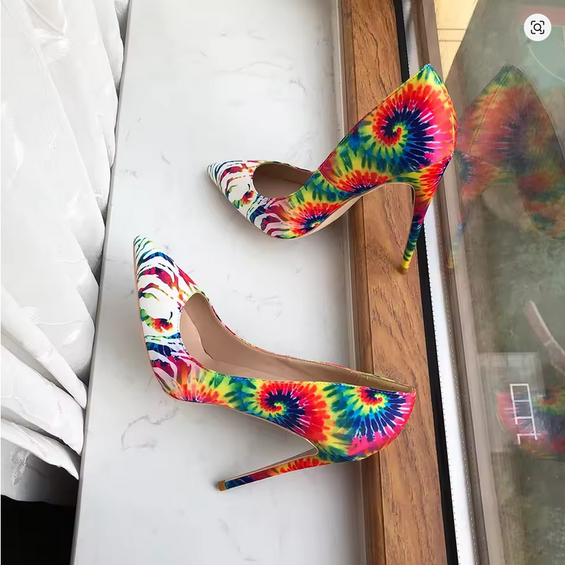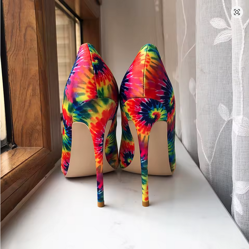 Rainbow Tie Dye Stiletto Heels Pointed Toe High Heel Pumps