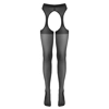 Black suspender stockings from Cottelli LEGWARE with a decorative seam at the back of the leg. Reinforced panty part with an open crotch and cut-outs at the sides. All openings are edged with fine lace trim. Preformed feet. Yarn weight 20 den. Oeko-Tex certified.